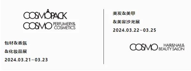 Cosmopack供應鏈及包材展區,Cosmo Perfumery & Cosmetics包材香水及化妝品展區將開放三天,直至3月23日(星期六)。